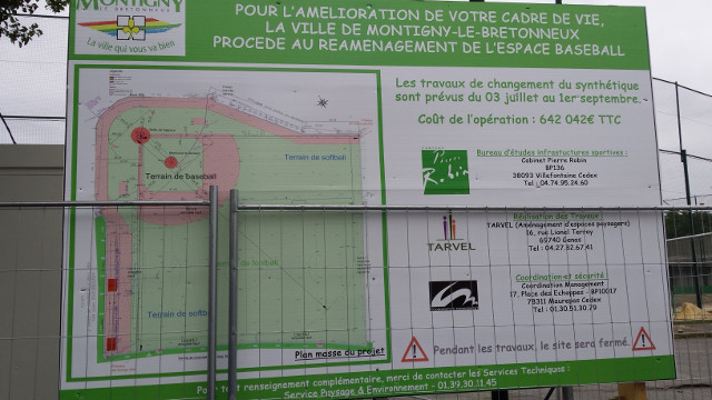 Les travaux de rénovation du terrain ont débuté depuis un peu plus d’une semaine, l’occasion de faire un point sur le plan de masse et l’avancement. Comme l’indique l’affichage municipal, la rénovation va principalement concerner la réfection du revêtement synthétique, les travaux dureront jusqu’en septembre (croisons les doigts) pour un budget de plus de 640.000 € !! On vous aime Montigny-le-Bretonneux de prendre si soin de notre sport.