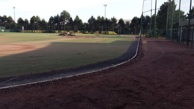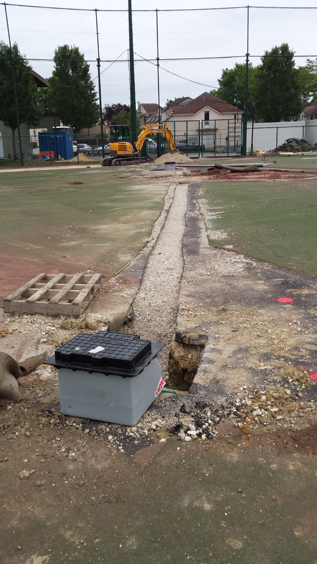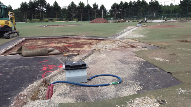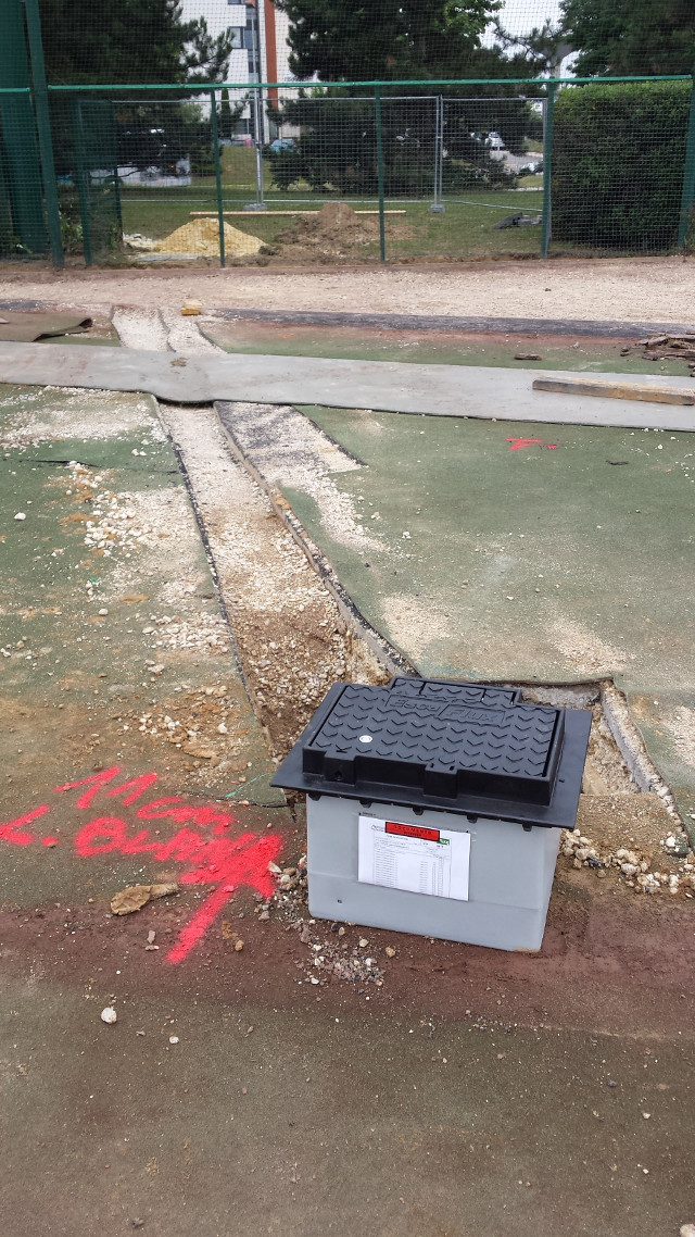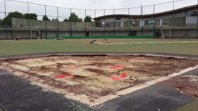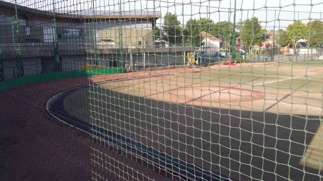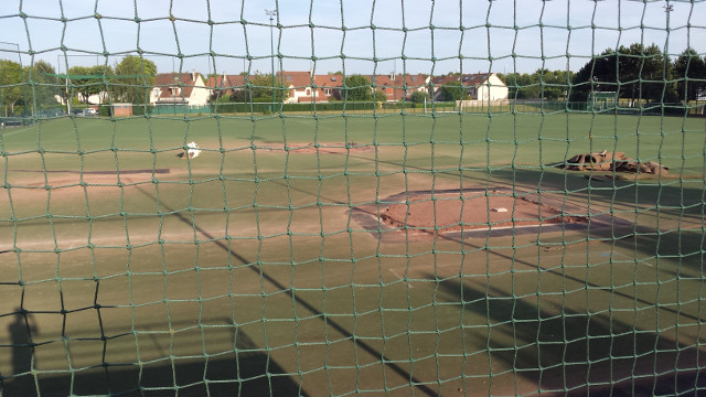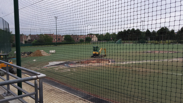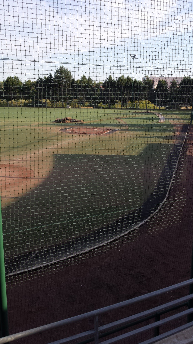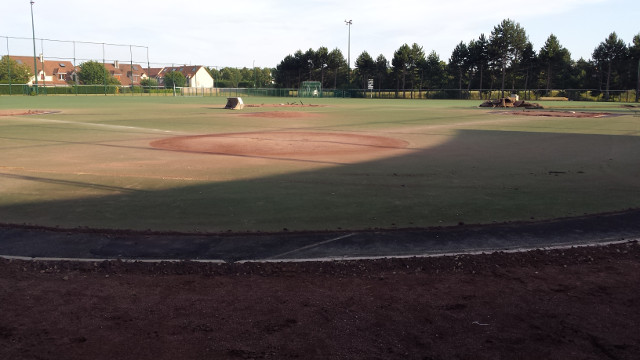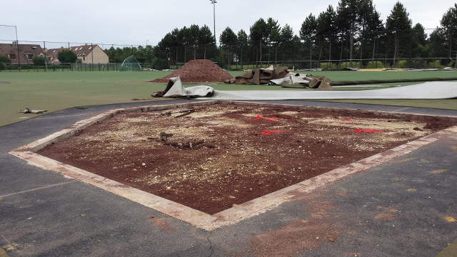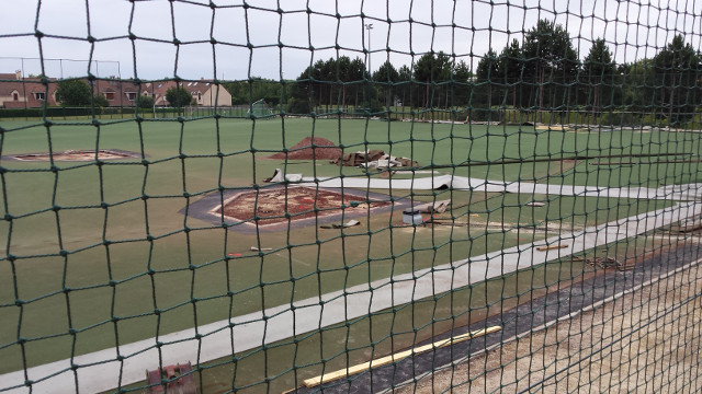 La zone de foul ball du champ droit sera également réduite pour y installer 2 nouvelles zones de frappes et de bullpen fermées, avec 2 monticules et 4 plaques de marbre. Toute la surface sera recouverte d’un synthétique nouvelle génération bicolore à l’exception de la zone de marbre et des monticules qui seront en terre battue. Enfin des prises électriques seront accessibles dans le sol pour y brancher la machine (ou autre suivant les besoins) et ce d’un peu partout sur le terrain. C’est d’ailleurs par-là que les travaux ont commencé comme vous pourrez le voir dans la galerie ci-dessous.