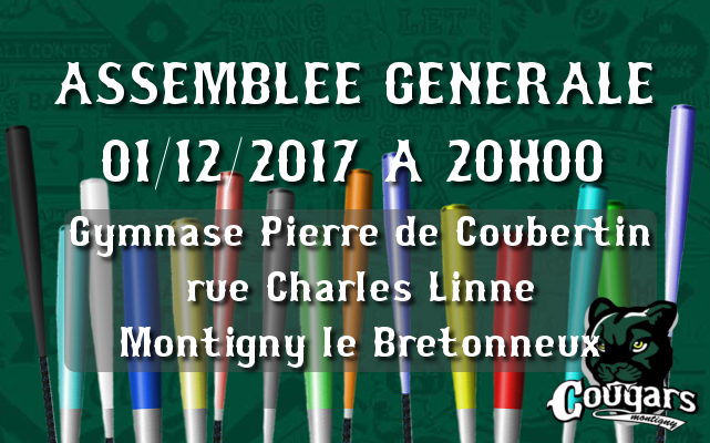 Tous les membres inscrits au club Montigny Baseball sont conviés à notre assemblée générale ordinaire qui aura lieu le :