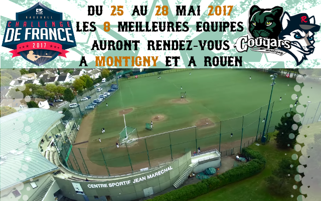 Le Comité Directeur de la Fédération Française de Baseball et Softball, réuni le samedi 8 octobre 2016, a attribué l’organisation du Challenge de France de Baseball 2017 à Rouen (terrain principal) et Montigny-le-Bretonneux (deuxième terrain).