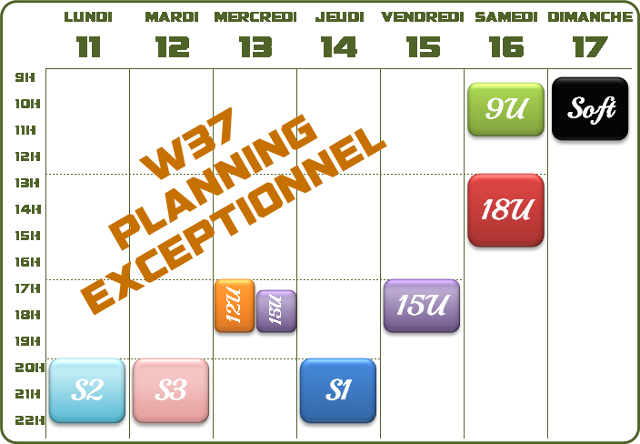 - S3 & S4 : Mardi 12/09 de 20h à 22h30
