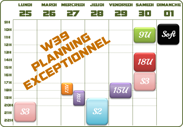 - S2 : Jeudi 28/09 de 19h30 à 22h30