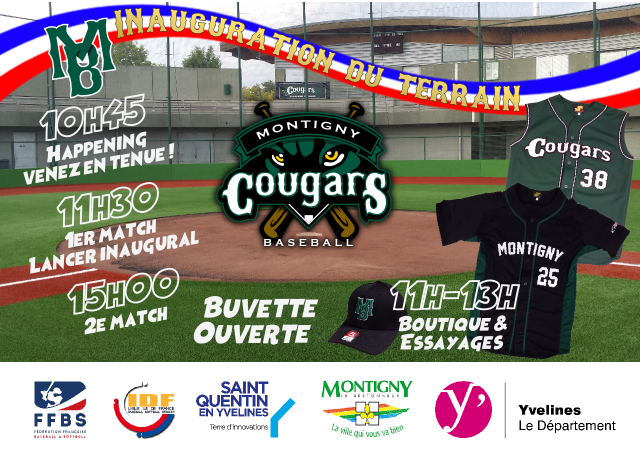 Le club de Montigny Baseball Softball et la ville de Montigny-le-Bretonneux ont l’honneur de vous inviter à l’inauguration du nouveau terrain de baseball-softball-football ce dimanche 08 octobre à partir de 10h45 au centre sportif Jean Maréchal, rue Victor Hugo.