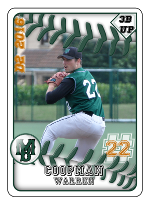Déjà 20 ans de baseball derrière lui à seulement 25 ans, c’est autant d’expérience engrangée pour aider l’équipe à relever les nouveaux défis de la Division 1. Une gueule, un esprit jovial et combatif, il devrait vous séduire tant sur le terrain par ses performances que par ses anecdotes dans son interview.
