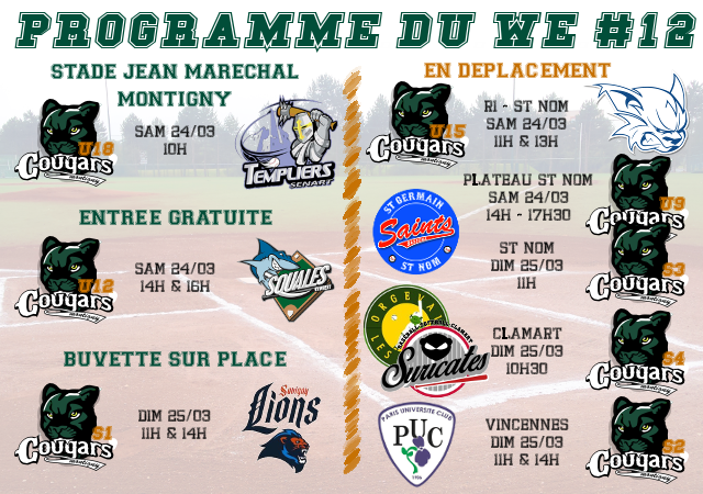 Bonne chance à tous nos Cougars pour ce nouveau week-end bien chargé.