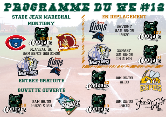 Quant aux S1, ils clôtureront leur Spring Training par 2 matchs face aux Templiers de Sénart.
