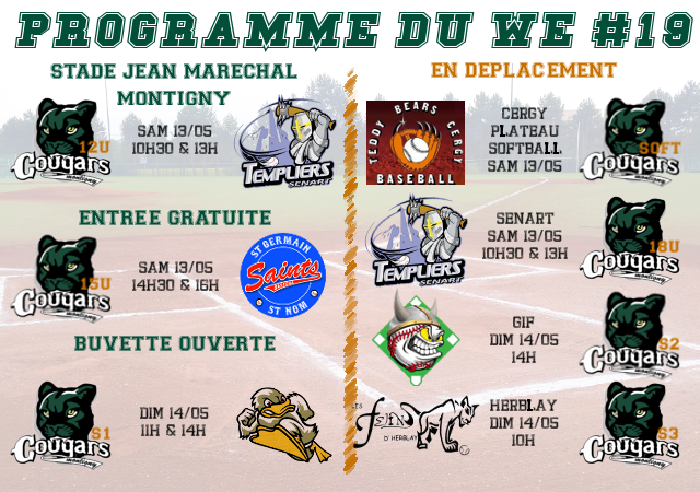 - Le softball ira à Cergy pour leur 3e plateau pour rencontrer les Teddy Bears de Cergy et les Félins d’Herblay