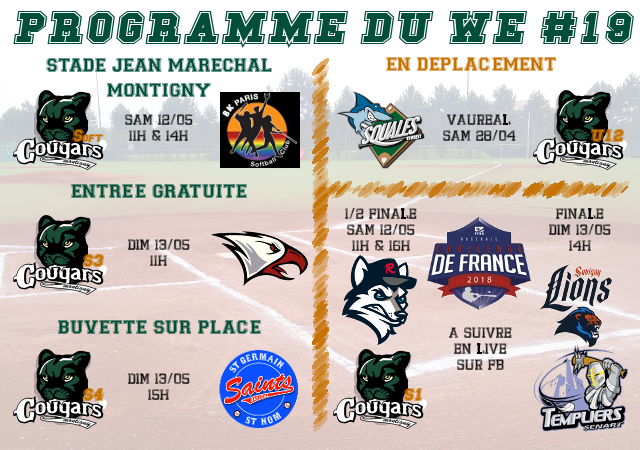 Pour les autres équipes, samedi le softball reçoit BK Royal pour deux rencontres pendant que les 12U se rendront à Vauréal pour affronter les Squales.