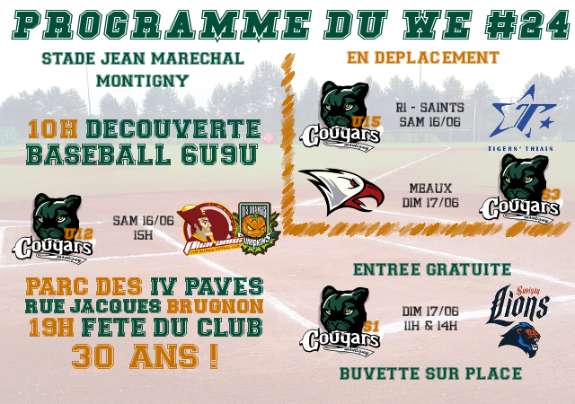 Enfin à l’extérieur, l’entente 15U avec les Saints jouera samedi face à l’entente de Thiais/Brevannes/Noisy, et dimanche les Seniors3 se rendront à Meaux.