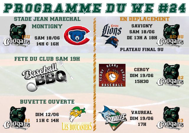 Les 15U reçoivent les French Cubs de Chartres. Derniers matchs pour les Cougars et pour espérer décrocher la 4e place du championnat il leur faudra prendre les 2 victoires.