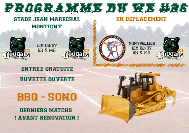 L’occasion pour les Cougars de vous inviter aux 2 derniers matchs qui auront lieu sur ce terrain mythique et qui en aura fait rêver quelques-uns durant toutes ces années. Pour l’occasion ce sera un match amical des seniors 3 jusqu’à présent invaincus cette saison en R3 face à leurs aînés les seniors 2 évoluant en R1.